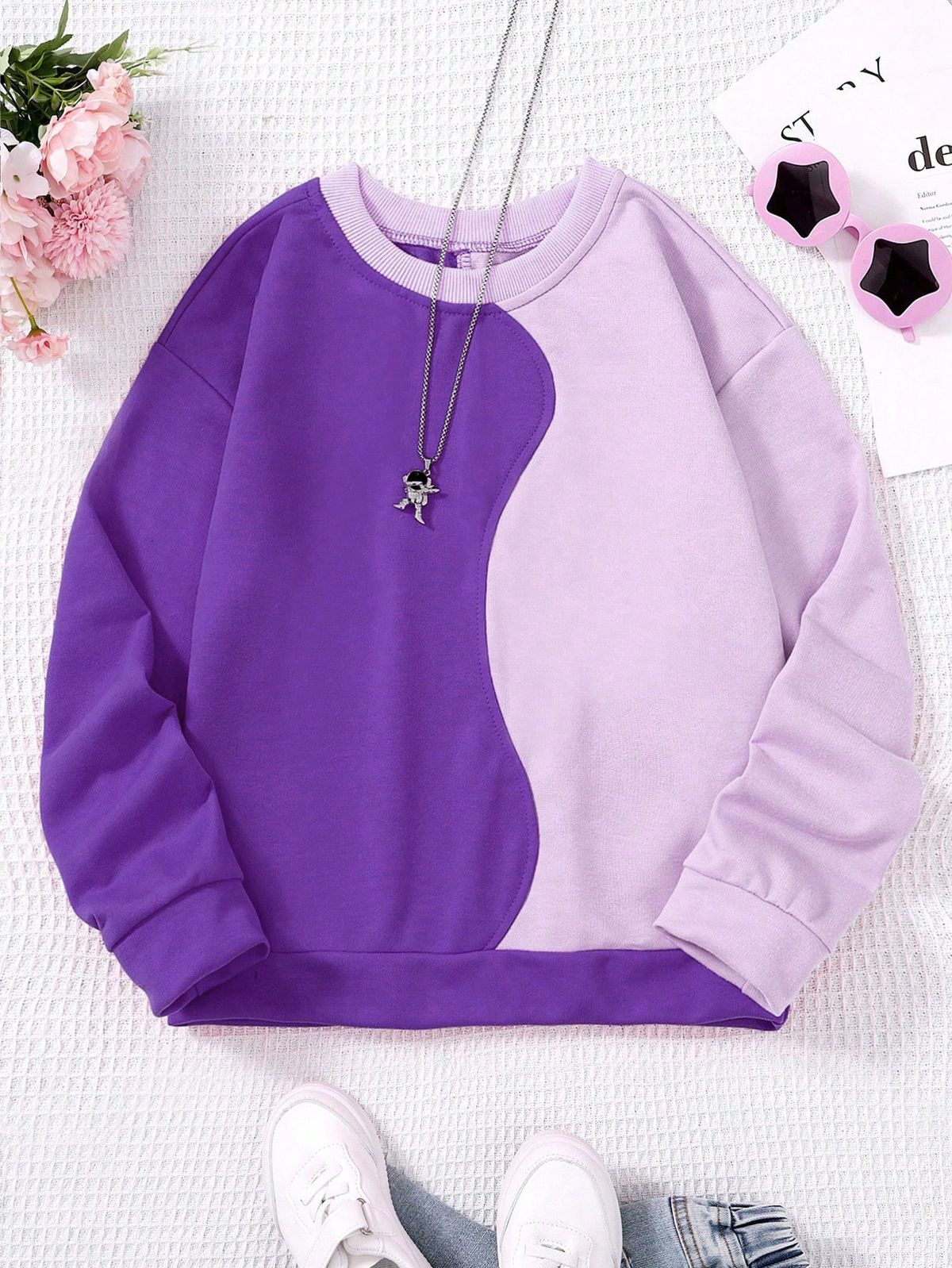 Add a playful and stylish touch to her wardrobe with the Tween Girl Colorblock Sweatshirt. Featuring a relaxed loose fit, vibrant colorblock design, and soft fabric, this long sleeve sweatshirt ensures comfort and freedom of movement. Perfect for casual outings, school, or layering during cooler days, it combines trendiness with practicality.